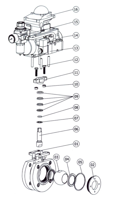 | 6 | Valve stem | 14 | Pneumatic actuator |