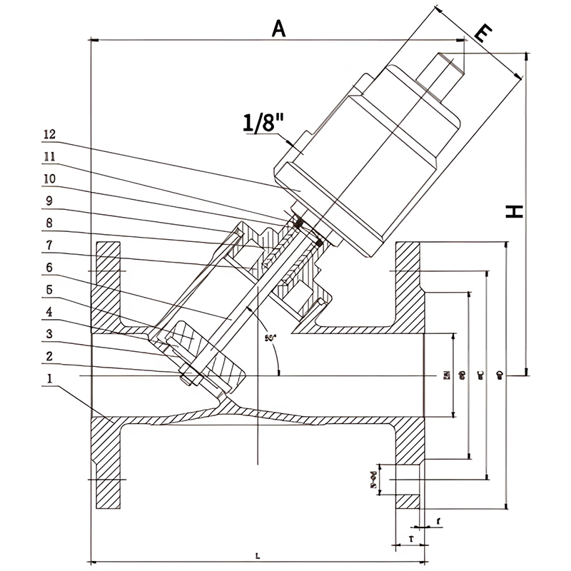 | Nominal Diameter DN | L | T | f | D | C | B | N-Φd | A | H | E | Actuator |